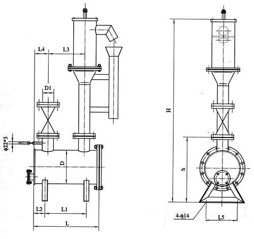 4、水封高度>2000mmH2O立式圆形排水器外形尺寸见图四、表四